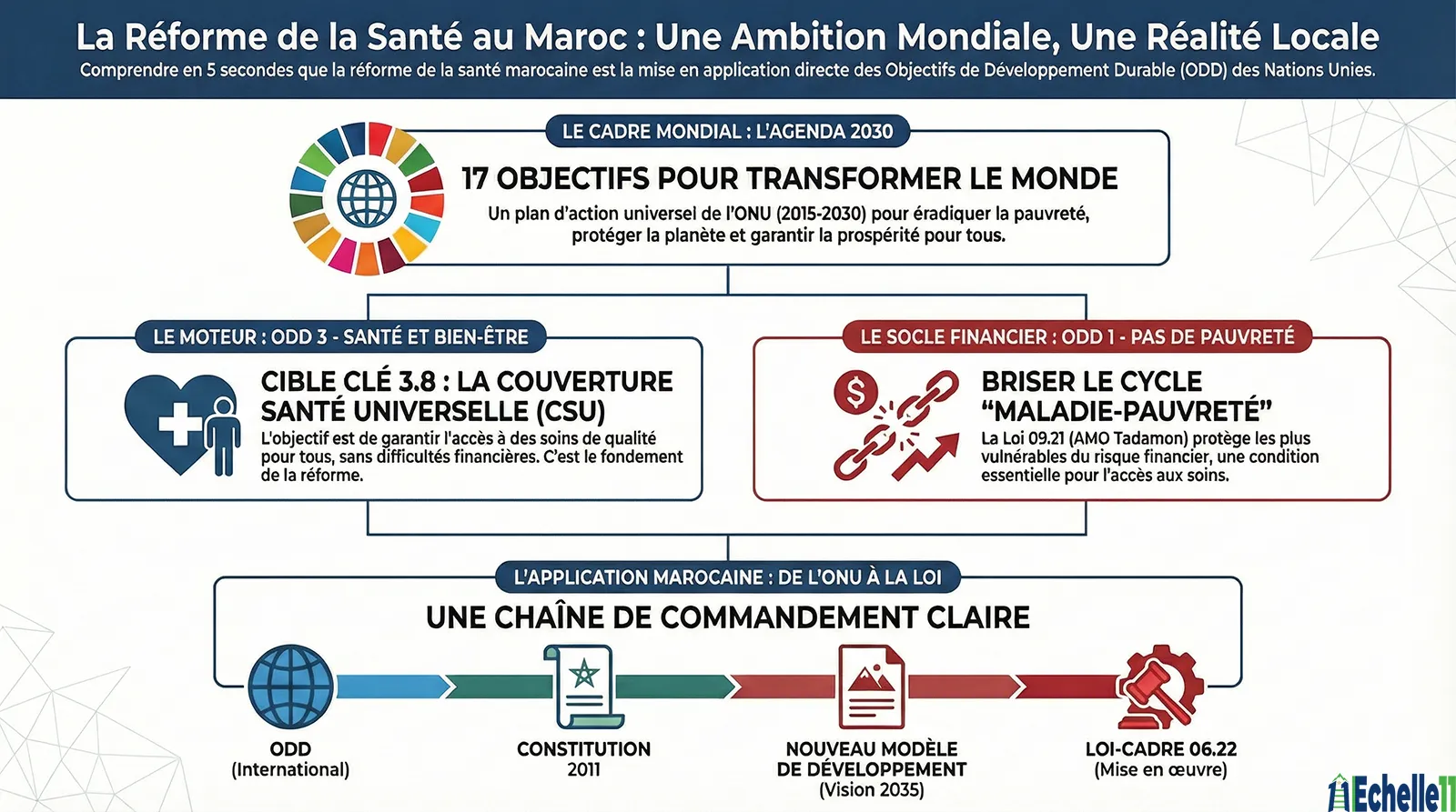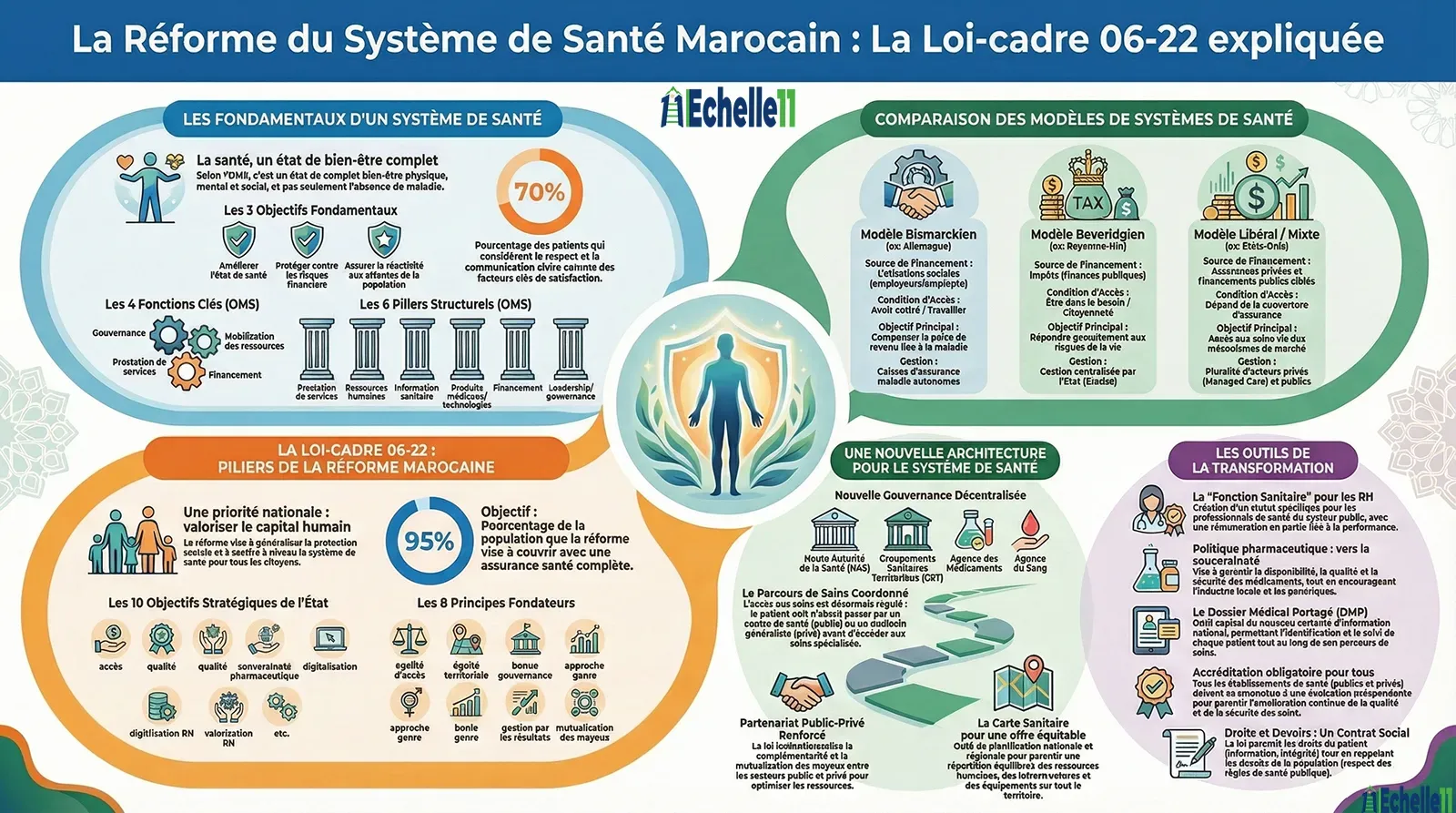 Accédez à notre cours complet sur le Plan Santé 2025, la stratégie officielle de refonte du système de santé marocain. Ce programme détaillé en 5 modules analyse la vision, les valeurs, les piliers, les axes et les actions du plan.
